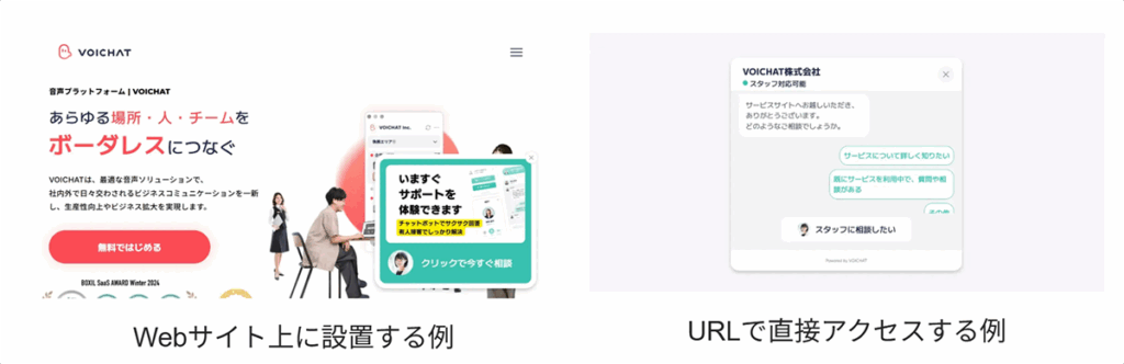 タグを埋め込む通常の利用方法だけでなく、URL指定で直接チャットボットを開くこともできます。